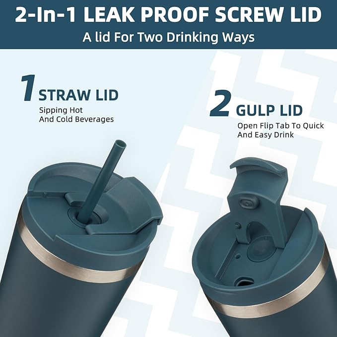 - BPA-Free Threaded Lids: The 2 In 1 Screw-on Lid, Not Only Can You Open The Lid And Drink Directly From The Flip Lid, But Also Can Insert A Straw In The Middle, Choose Your Own Way For Drinking
