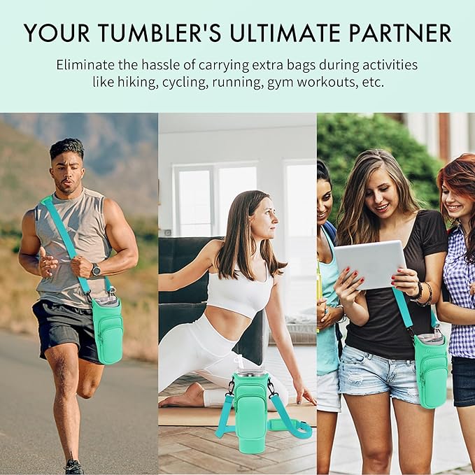 • 【Ideal Stanley Cup Accessories】Perfect match Stanley Quencher H2.0 FlowState Tumbler 40oz with Handle, Stanley Adventure Quencher Travel Tumbler 40 oz and more 40 oz tumbler with handle. The tumbler can easily fit into the car cup holder even when wearing the water bottle carrier bag.