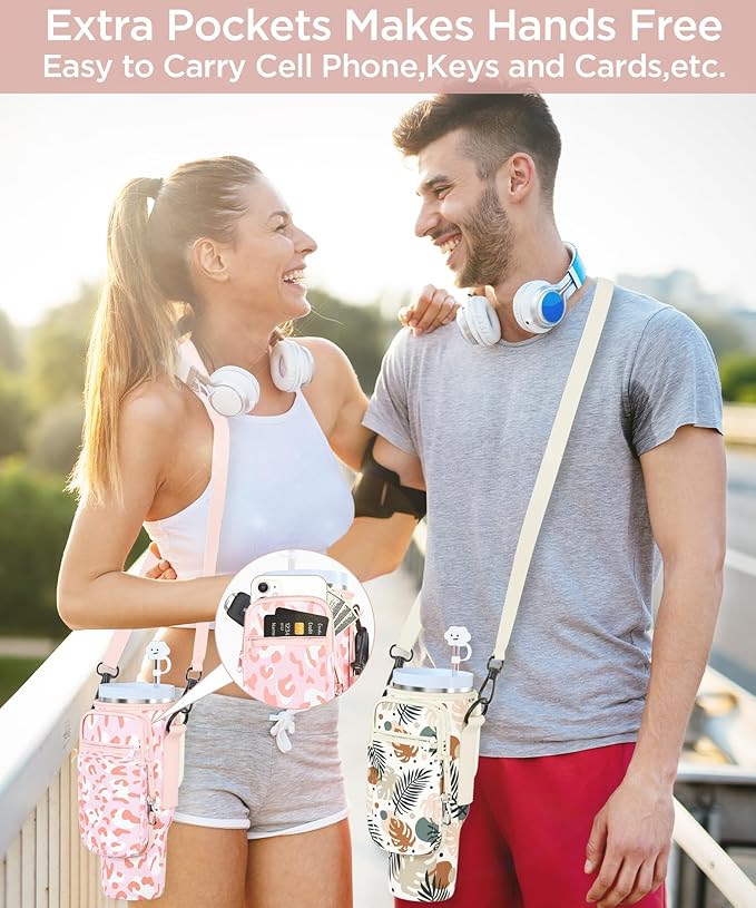 - 【Wide Application and Perfect Gift】This beautiful water bottle cover for stanley 40 oz tumbler is perfect for walking, biking, camping, hiking, commuting, or even if you're at the beach, gym, or sporting events. The tumbler pouch's versatile design makes it suitable for various sports and outdoor activities. And the water bottle holder with strap is a perfect gift for stanley fans and a good gift for Valentine's Day