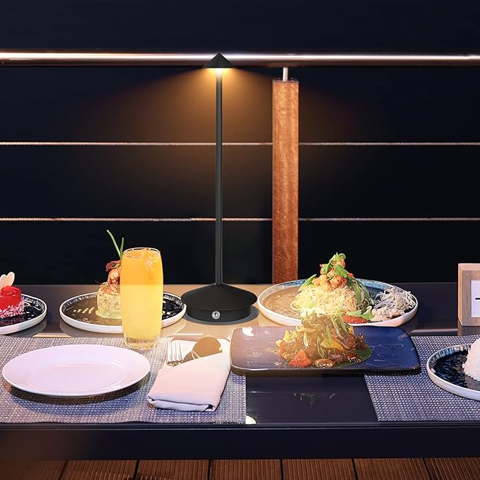 - High-Quality Materials: The lamp body of the battery table lamp is made of die-casting aluminum material, with frosted baking paint process on the surface, IP54 waterproof level, anti-corrosion and anti-rust, not easy to fade, and non-slip rubber design on the bottom. Built-in high brightness energy-saving LED lamp beads, CRI 85+,soft light is not harsh.