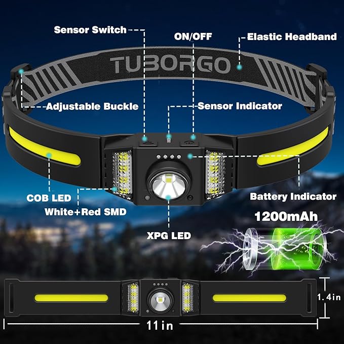 - Special Feature : Rechargeable, Adjustable Headband, IP65 Waterproof, Lightweight, 9 Lighting Modes, Motion Sensor