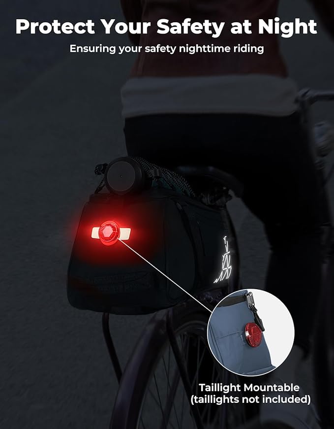 - Safe Night Riding: Enhance your night riding safety with our bike bag, featuring white patterned PVC reflective strips on the back and sides for improved visibility. It also includes a convenient strap for easy taillight installation (taillight not included), ensuring an extra layer of protection