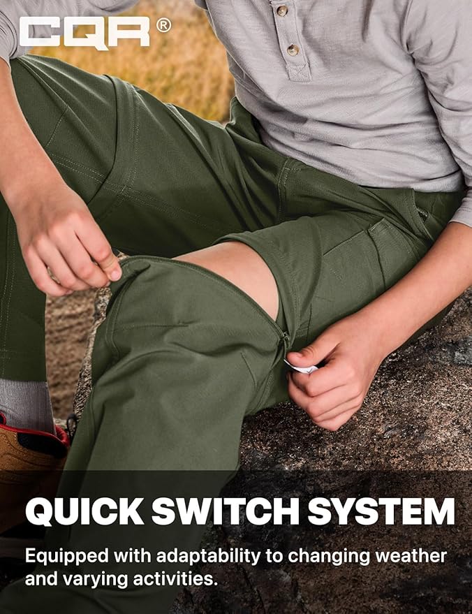 CQR Kids Youth Hiking Cargo Pants, UPF 50+ Quick Dry Convertible Zip Off Pants, Outdoor Camping Pants