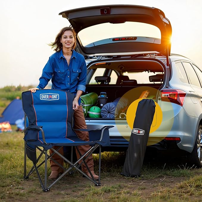 - 【Durable Oxford Fabric】Overmont oversized folding chair measures 39x20x24in and is made of double-layer tear-resistant 600D Oxford fabric with sponge cushion, providing excellent durability and breathability.