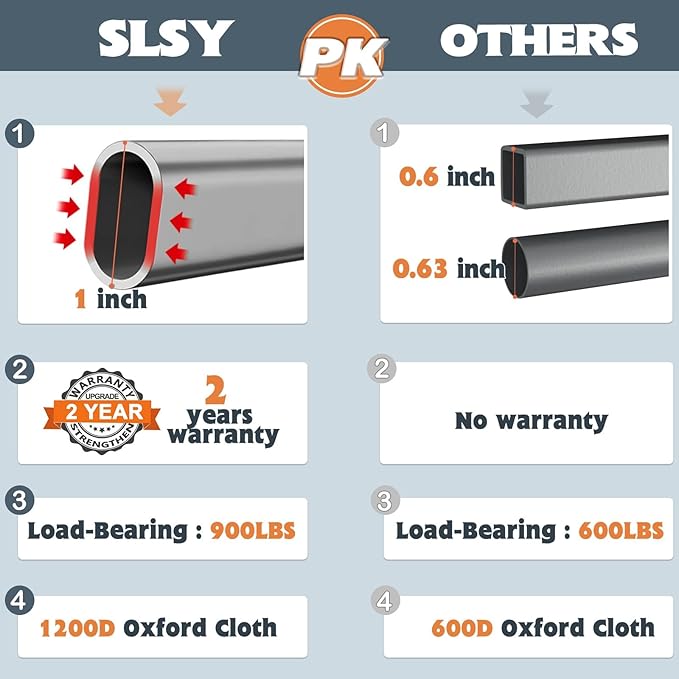 - Premium Material: Slsy camping cot for adults is made of a square anti-rust steel frame, durable thicker pipe and double layer 1200D Oxford cloth. Most similar cots are only 600D Oxford cloth, ours are more durable to use, supports up to 900 lbs