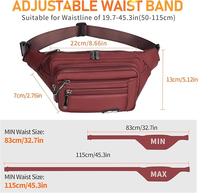 Waist Pack Bag Fanny Pack for Men&Women Hip Bum Bag with Adjustable Strap for Outdoors Workout Traveling Casual Running Hiking Cycling (Wine Red)