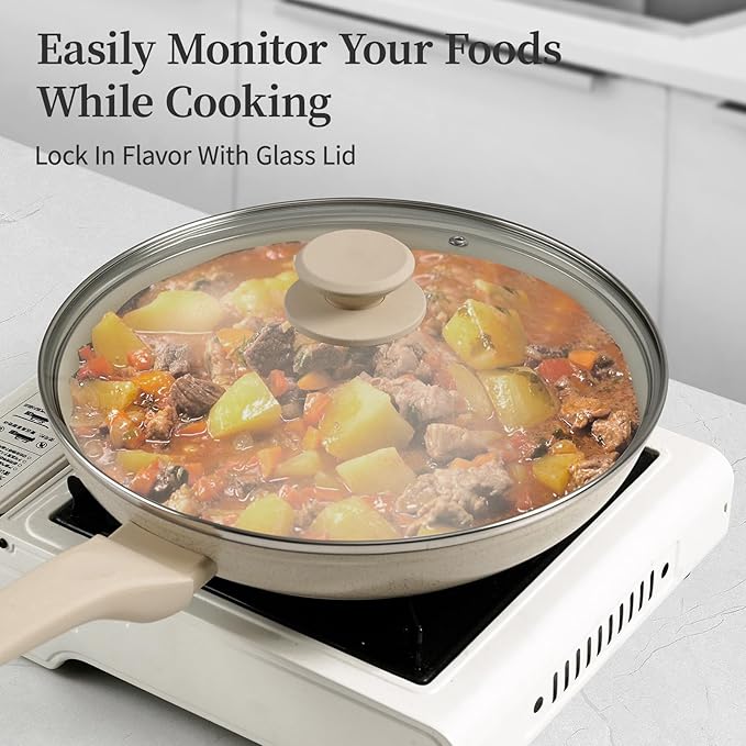 - 【Easy To Clean】The nonstick frying pan super easy to clean, just wipe the cooking pan over with a sponge with warm soapy water, or rinse it with flowing water, all the mess immediately disappear. Dishwasher safe, but recommend hand wash to protect the nonstick coating. oven safe to 302°F(Remove the handle before use the oven)