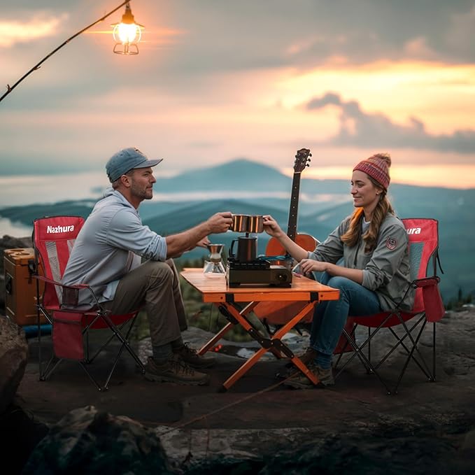 Nazhura 2 Pack Outdoor Camping Chairs Folding/Foldable/Portable with Cooler Pouch, Mesh Backrest and Cup Holder Pocket(Red, 2 Pack)