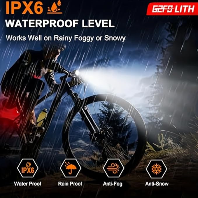 - 【ALL ABOUT SAFETY】 Weather resistant and durable - Rated at IPX6 Water Resistant, These lights have been built to high quality material for all weather conditions. Has undergone strict anti drop and vibration testing impact resistant and built to perform.Bike headlight and taillight have ultra high visiblity to enhance the safety of your ride.