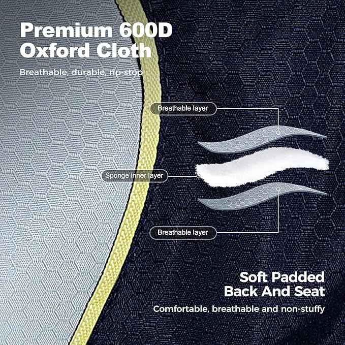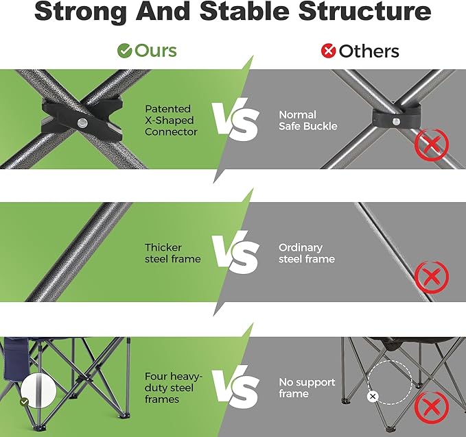- HIGH QUALITY CAMPING CHAIR : Ergonomic padded back ,600D padded oxford fabric , durable powder-coated steel tube frame and armrests , high-quality materials only provide you with a comfortable and safe chair . Weight Capacity: 450 LBS , stable and strong