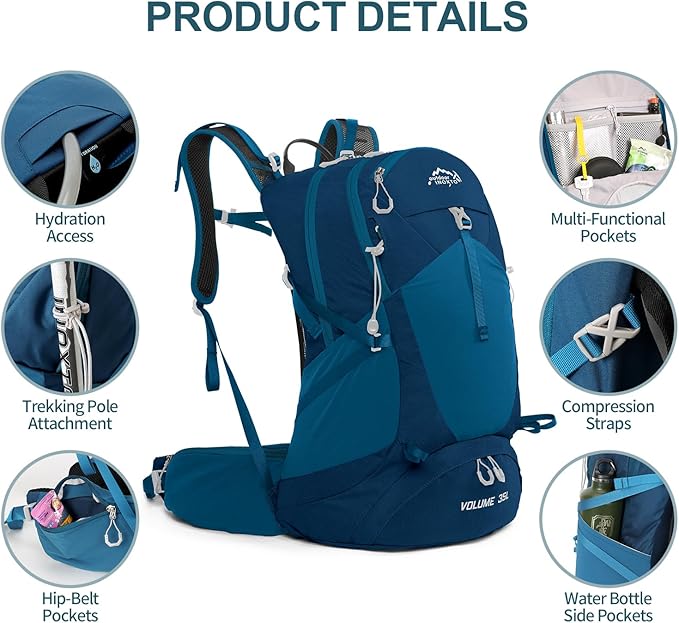 - 【Water-Resistant And Durable Material】Our IX INOXTO Hiking Backpack is made of high-density polyester material, water-resistant, tear resistant, with good abrasion resistance and environmental protection, suitable for any outdoor environment.High-quality durable zipper, well-sewn craftsmanship, high dense stitching. All of the backpack's stress points and shoulder straps are reinforced with lap-knots to ensure long lasting durability. Waterproof backpack comes free with a waterproof rain cover.