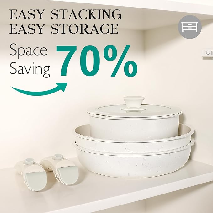 - ๐-๐๐ข๐๐๐ ๐๐จ๐จ๐ค๐ฐ๐๐ซ๐ ๐๐๐ญ ๐๐ง๐๐ฅ๐ฎ๐๐๐ฌ: 8"/10" inch frying pan, Removable Handle*1, 2Qt saucepan and 7" silicone Lid