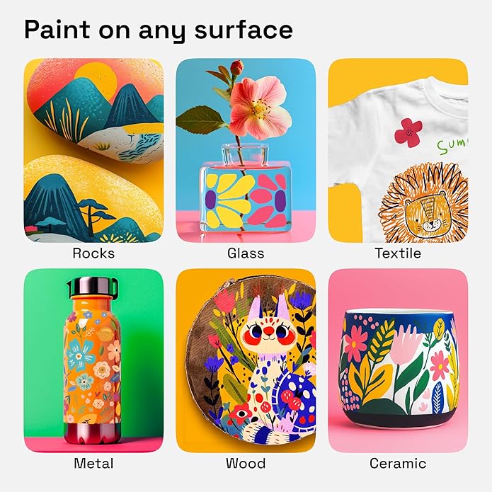 - DUAL TIP: Our acrylic paint markers come with 2 tips for 2x the fun. The acrylic paint pens are equipped with a dot tip and a brush tip. Get the most out of your paint pens acrylic markers with a vibrant palette of colors!
