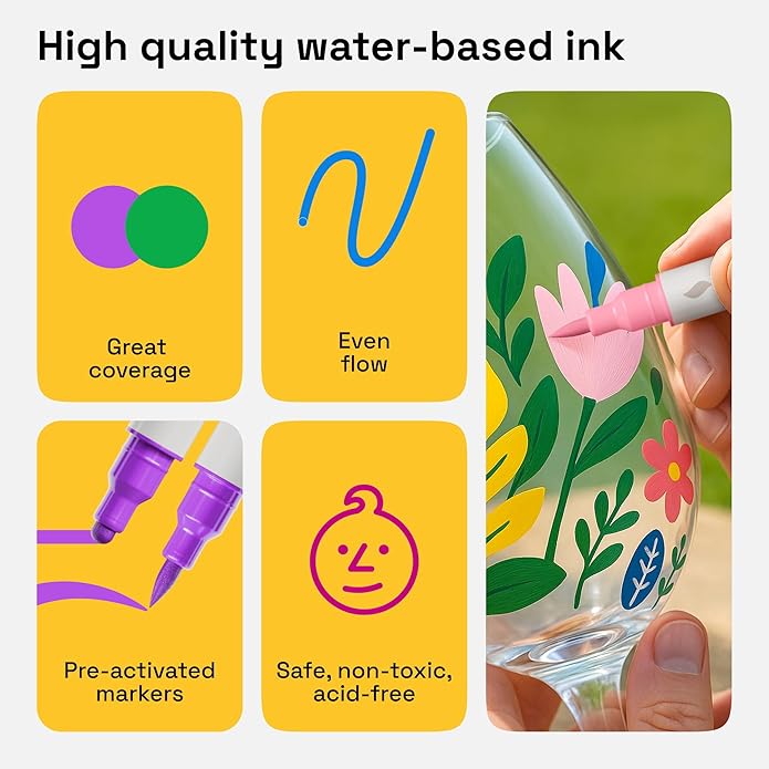 - PRE-ACTIVATED: Unlike usual push down markers, our paint marker set has cotton nibs that are pre-activated, making them perfect for kids!
