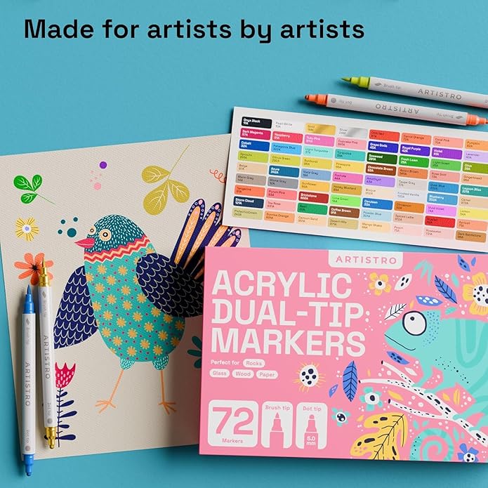 - ROCK PAINTING KIT: Artistro craft markers are perfect for the rock surface. Create beautiful images on the rock with these dual brush pens! WARNING: Store acrylic markers horizontally to maintain ink flow and prevent drying.