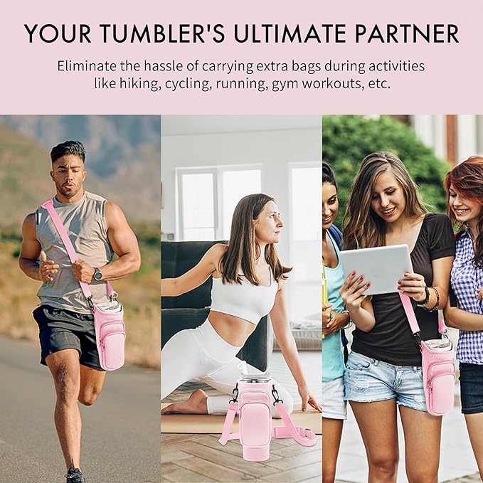 Water Bottle Carrier Bag with Phone Pocket for Stanley Cup 40/30 oz, Water Bottle Holder with Adjustable Strap& Straw Cover, Stanley Cup Accessories