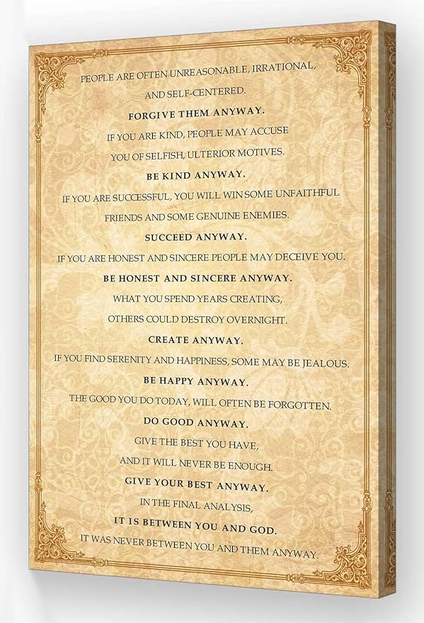 Wallpicss Do It Anyway Wall Art Framed Canvas Artwork Motivational Posters Vintage Poem Wall Decor Poetry Quotes Poster Painting Pictures 12x18 inches