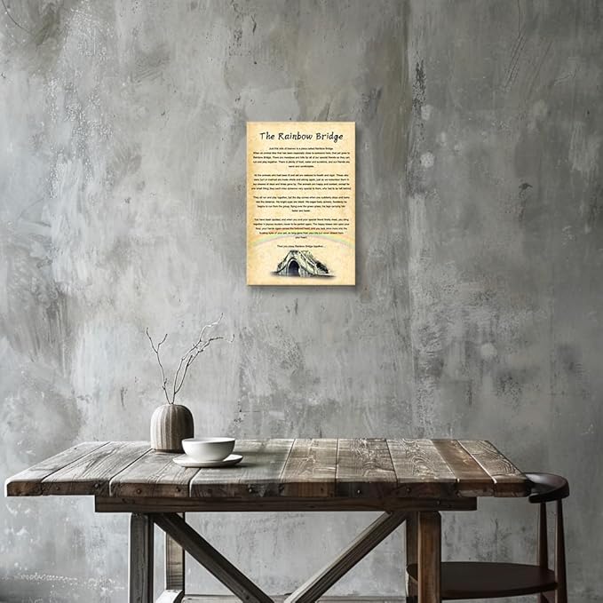 Wallpicss The Rainbow Bridge Poem Wall Art Framed Positive Quotes Poster Retro Poetry Canvas Painting Pictures Prints for Bedroom Decor 12x18 inches