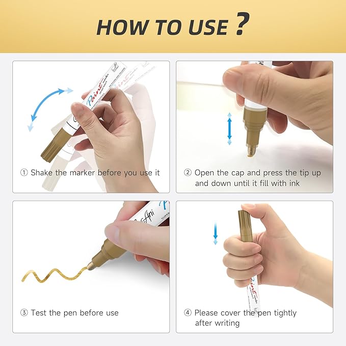Paint Markers Paint Pens, Set of 2 Gold Oil Based Permanent Markers for Rock Painting, Metal,Glass,Ceramic,Wood,Canvas DIY Crafts Art Project (Gold,2 Pack)