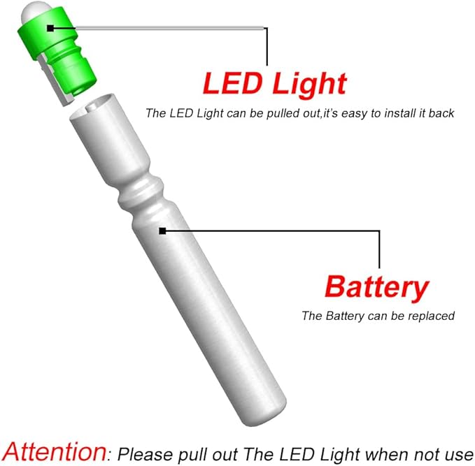 • Enhanced Visibility: Say goodbye to the limitations of regular glow sticks when fishing at night. The LED Bobber Light offers superior brightness, allowing you to effortlessly track every movement of the fish and significantly improving your chances of success.
