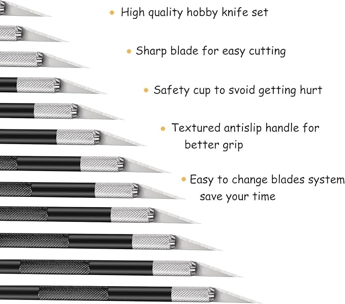 - What you get: 15 packs exacto knife hobby knife with safety cap, enough for your daily use; Useful knife set for lightweight precision cutting; Each knife is 14 cm/ 5.5 inch in length (length of the safety cap is not included