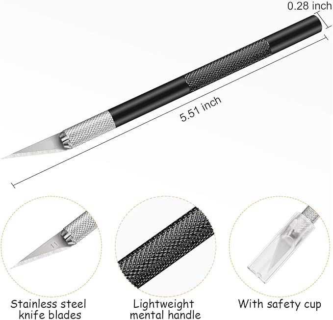 - Wide applications: precision knife with No. 11 fine point blade, pointed enough for precise cutting, engraving, trimming and stripping from delicate to thick material, including paper, fabric, mat board, plastic, leather, metal, etc