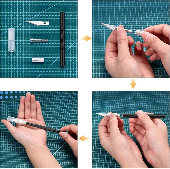 - Attention please: these blades are very pointed, so please watch out your fingers when you replace the blade to avoid any cutting and scratches; Cover the precision knife blade with safety cap after every-time use and keep it away from children