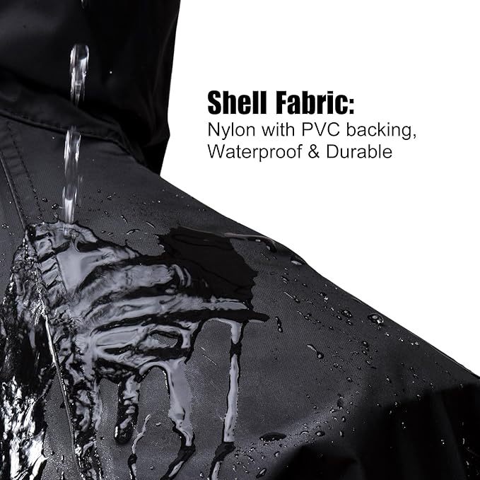 - ☔【High-Quality Material】Made of high-density Nylon with a PVC coating on the back, ensuring excellent waterproof performance. It is lined with polyester mesh fabric for added comfort. And all seams of the raincoat are taped, enhancing its waterproof capabilities and ensuring you stay dry even in heavy rain.
