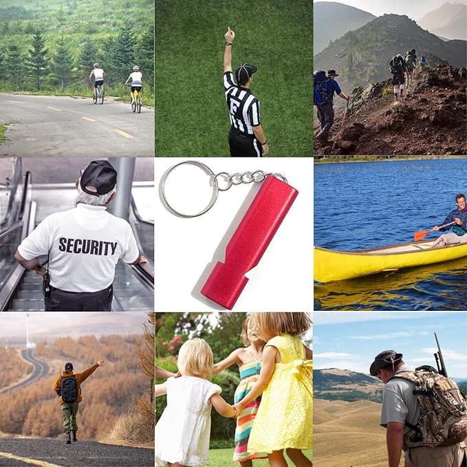 - 【Durable and Corrosion-Resistant】- Made from high-quality aluminum alloy, these robust whistles are built to last, capable of withstanding harsh outdoor elements without corroding.