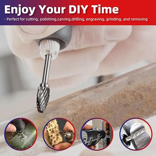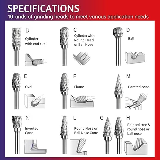 - ✔【WIDELY APPLICATION】Carbide burs are tools that are used for precision in grinding, cutting, welding, jewellery making, wood carving, shaping, model engineering, cylinder head porting and sculpting. Additionally, they are used for deburring, where burrs, excess materials, sharp edges, and weld beads are removed.