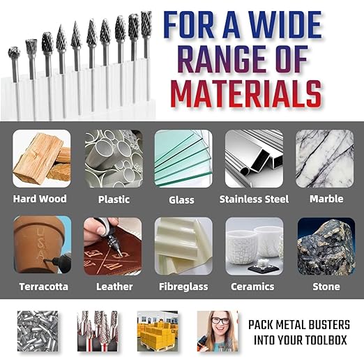 - ✔【A MUST-HAVE】The 10-PC carbide burrs kit is a great assortment. The differing profiles let wood carvers or metal engravers trim any shape with ease. Great for detail work!