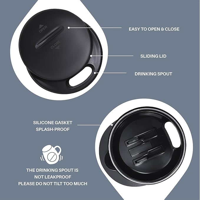 - Special Feature : Condensation Resistant, Double Wall, Sliding Lid, Spill Proof, Vacuum Insulated