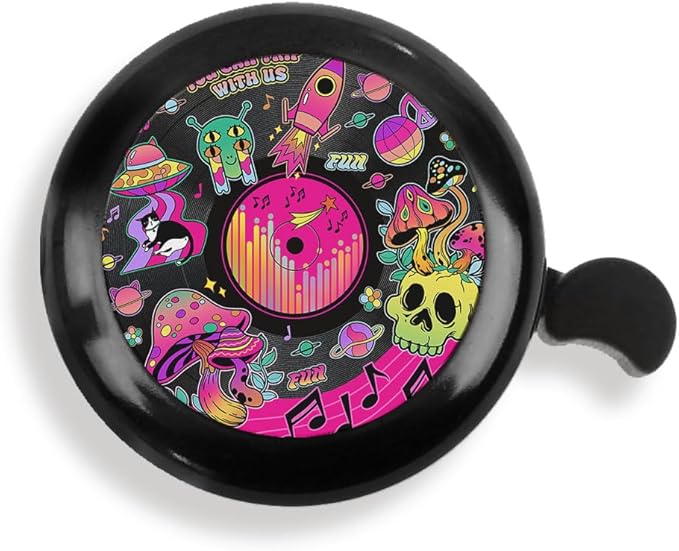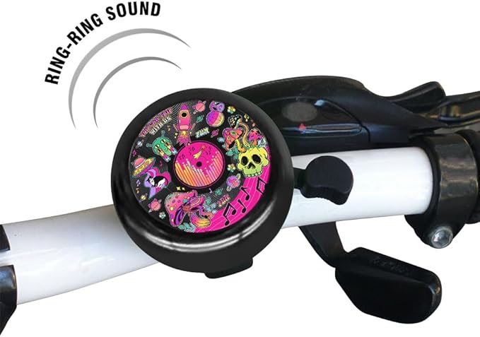- CUTE DESIGNS: A variety of bright colors and cute images are beautifully printed on the round front surfaces of each bicycle bell to make your bike handlebar unique and stylish and also give you a nice day.