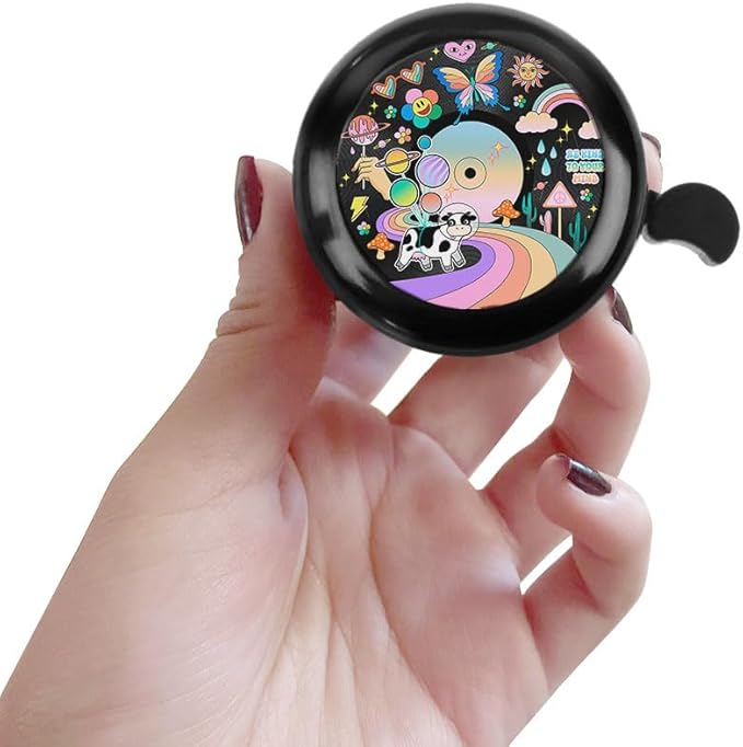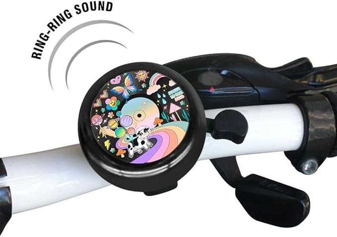 - CUTE DESIGNS: A variety of bright colors and cute images are beautifully printed on the round front surfaces of each bicycle bell to make your bike handlebar unique and stylish and also give you a nice day.