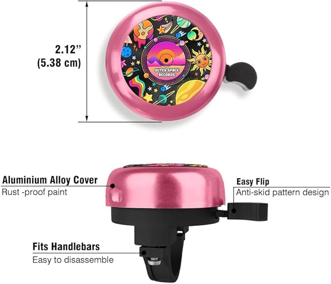 - UNIVERSAL FIT, EASY TO INSTALL: These adorable aluminum bicycle bells fit any regular bicycles, mountain bikes, tricycle electric bikes, kick scooters, balance bikes, etc. The complete installation can be easily done within 1 minute with just a screwdriver.