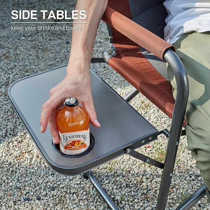 - SIDE TABLE AND MESH POCKETS : With the table and built-in cup holder you can keep important items like phones, drinks and anything else within reach, also convenient for Makeup artists to keep makeup case and brushes; bottom mesh pocket for extra storage