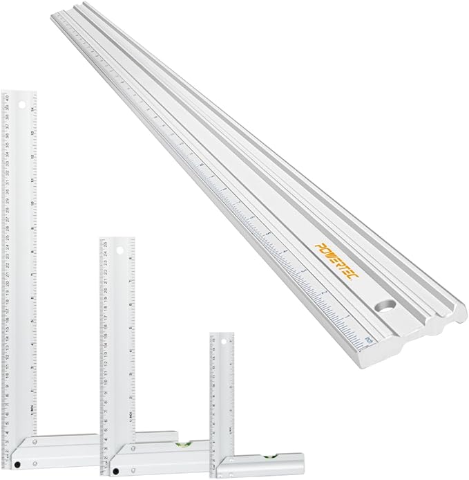 POWERTEC 38 Inch Machinist Aluminum Straight Edges and 3pc L Square, for Checking Surface Warp, Marking/Scribing Lines - Used w/Feeler Gauges for Automotive Repairs, Cylinder Head Checks (72113)
