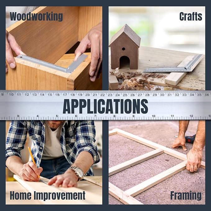 - INCLUDES: (1) 38 Inch Straight Edges (3) L-Shaped Square Rulers (overall lengths: 6-1/4”, 10-3/16”, 16-1/8”)