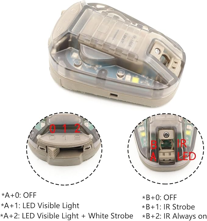 Tactical IR Strobe Helmet Light Military Identification Light with Visible LED + White Strobe Survival Signal Light (Tan-Blue)