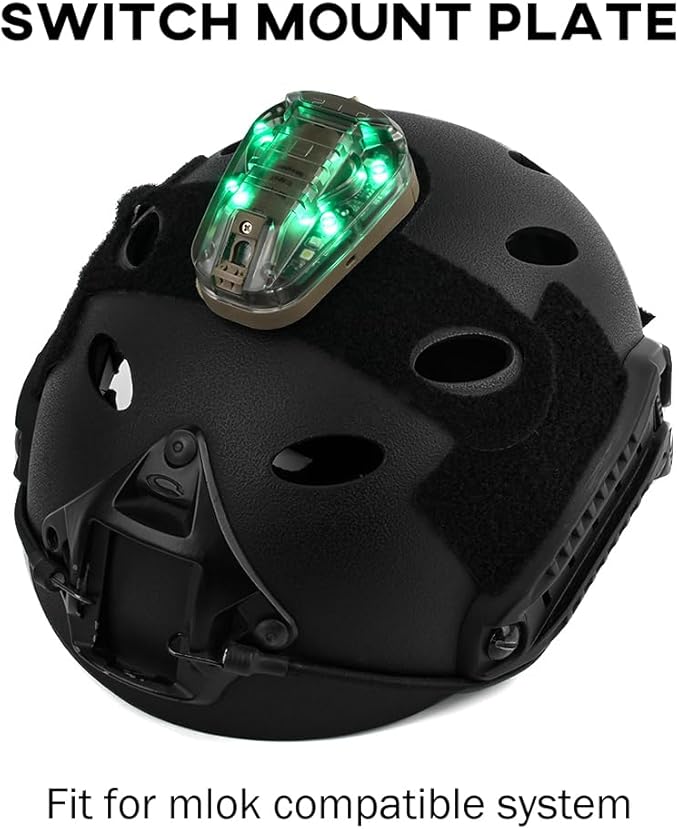 - Tactical Helmet Strobe Light: Hook & Loop backing attaches to any loop pile surface - Curved base for flush mounting to most tactical helmets.With design of sliding switch, this outdoor airsoft strobe light will not be inconvenient even when operating with gloves on or in the helmet