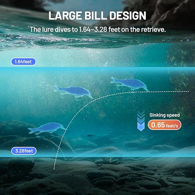 - Reinforced Lip Design: Built with a reinforced lip to give this lure nervous and erratic movement, it produces wide S-shaped action just beneath the surface and allows anglers to fish a swimbait in windy or dirty water conditions. In addition, The unique tongue plate design of lipped bait can firmly fix the water layer of the bait