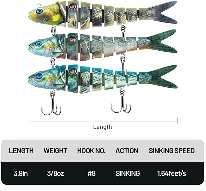 - 8 Multi-Jointed Construction: Designed with 8 segment multi-jointed body, HANDING M1 swimbait fishing lure can move flexible in thw water. In addition, life-like swimming actions make it attract more catches and provoke predator fish to strike.