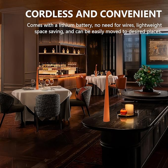 - 【Widely used 】This cordless desk lamp is cool and novel, with a simple candle design, which is very fashionable and unique. It can enhance the romantic atmosphere of the living room or garden on a lovely night, making it perfect for couples' candlelight dinners. This rechargeable desk lamp does not require wires during use, easily updates space, and can be placed anywhere. Very suitable for outdoor camping, dinner lighting, family gatherings, cafes, reading, restaurants,bar atmosphere lighting.