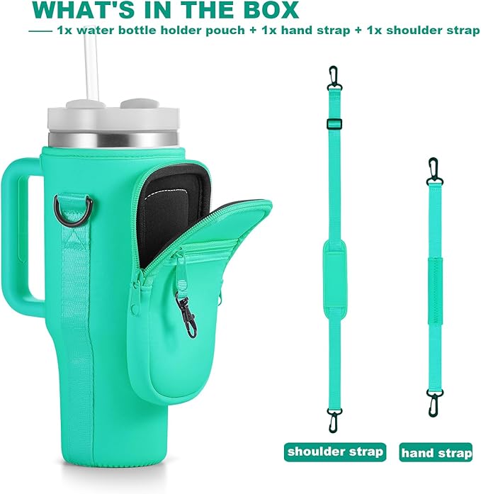 - Style Meets Function: In a vibrant Green hue, this tumbler holder pouch is not just practical but also a fashion statement. Stand out at social gatherings and be the center of attention while keeping your drink close at hand. it's also perfect for walking, biking, camping, hiking, school, commuting, or even if you're at the beach, gym, or sporting events. And the water bottle holder with strap is a perfect gift for stanley fans.