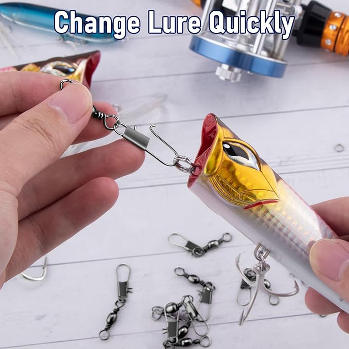 - 【Easy to Open and Close】 Easy open-close design safety snap allows you to change your lure single-handedly, without having to re-tie and saves your time. It's compatible with multiple types of leaders and lures like crankbaits, popper and rigs for freshwater and saltwater application.