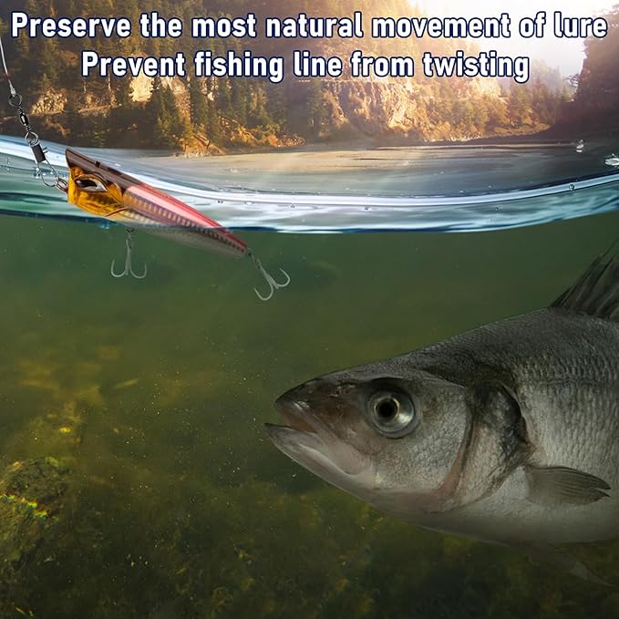 - 【360° Smooth Rotate】 Barrel swivels provide 360 degrees unlimited rotation, which allows your lures to swim more naturally and effectively prevents line twist.