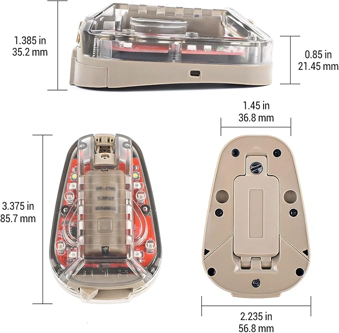 - 4 Lighting Modes: Mode-1. constant-on blue light; Mode-2. constant-on blue light and strobe white light; Mode-3. constant-on IR light; Mode-4. IR strobe light. Note: IR light to be fully displayed required through equipment with night vision.