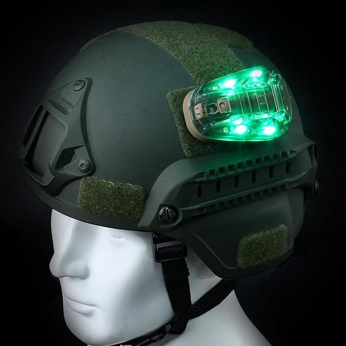 - [4 Modes Helmet Light] - Sliding Switch Design, you can switch: constant-on green light; constant-on green light and strobe white light; constant-on IR; strobe IR (Note: IR needs to be seen under the night vision device)