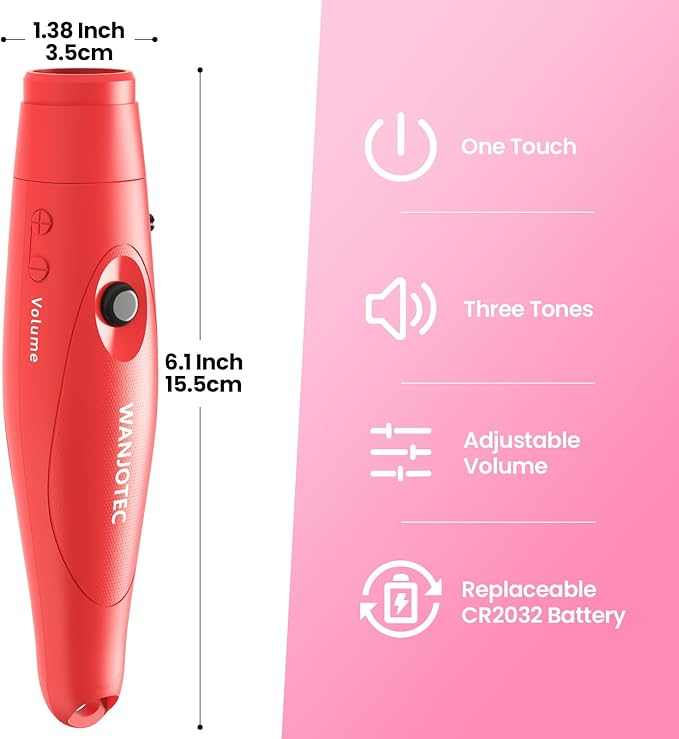 - 【Easy to Carry】The black & pink whistle is made of high quality ABS material, very sturdy and durable, non-toxic, streamlined appearance, compact size, crack resistant and fall resistant; And comes with a long lanyard that can be easily carried through a backpack or hung around the wrist and neck; Electronic whistle comes with 4PCS CR2032 batteries, if the sound becomes abnormal, please replace the battery first