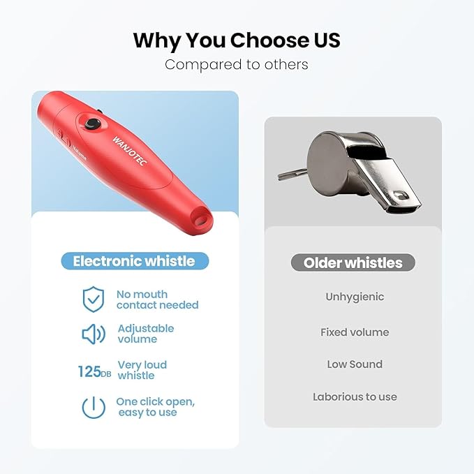 - 【Perfect Gift】Electric whistle with 125 db high volume, easy to get attention, not only the role of whistle collection, but also the role of life saving; Suitable for all sports events (basketball, volleyball, football, soccer, etc), it is perfect gift for teacher, referee, coach, lifeguard, guard, police and so on